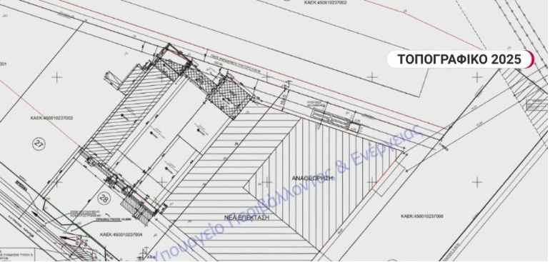 Ο ενδιαφερόμενος κατά τη διάρκεια της παρούσας άδειας να εφοδιαστεί με άδεια δόμησης για την τοποθέτηση των δεξαμενών υγραερίου από την αρμόδια πολεοδομική υπηρεσία. Σύμφωνα όμως με το τοπογραφικό διάγραμμα του 2025 που παρουσίασε το ΕΡΤnews οι δεξαμενές αποτυπώνονται ως υφιστάμενη και σταθερή εγκατάσταση και πάλι σε απόσταση 5,40 μέτρων, δηλαδή μικρότερη των 7.5 μέτρων που ορίζει ο νόμος.