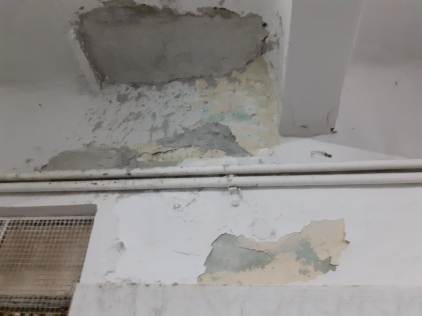 Στη συζήτηση που είχαμε με κρατούμενους, -παρουσία του διευθυντή, του αρχιφύλακα και του φυλακτικού προσωπικού-, μας είπαν ότι διαβιούν ο ένας επάνω στον άλλο σε άθλιες συνθήκες σε θαλάμους που είναι άβαφτοι, βρόμικοι και όπου οι σοβάδες πέφτουν στα κεφάλια τους.