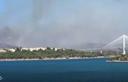 Μεγάλη φωτιά μαίνεται σε δασική έκταση κοντά στο χωριό Λευκίμμη στην Κέρκυρα.