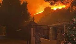 Η ,μεγάλη φωτιά που ξείνησε το απόγευμα της Τρίτης από τον Πεντέλη και εκτείνεται πλέον σε ένα ευρύ μέτωπο σε Γέρακα, Παλλήνη, Ανθούσα, Πικέςρμι, κατακαίει τα πάντα στο πέρασμά της.