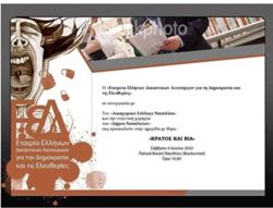 Ημερίδα με θέμα "ΚΡΑΤΟΣ ΚΑΙ ΒΙΑ" οργανώνει το Σάββατο 4 Ιουνίου στο Ναύπλιο η "Εταιρεία Ελλήνων Δικαστικών Λειτουργών για τη Δημοκρατία και τις Ελευθερίες".