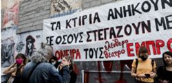 Με συνθήματα και τραγούδια ,μεταξύ των οποίων και το «Kalashnikov» του Γκόραν Μπρέγκοβιτς που ακούστηκε από χάλκινα και κρουστά, εκατοντάδες πολίτες που βρέθηκαν έξω από το θέατρο «Εμπρός» έσπασαν τους τσιμεντόλιθους και αρκετοί από αυτούς ξαναμπήκαν στο ιστορικό κτήριο στου Ψυρρή.