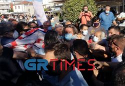 Επεισόδια ανάμεσα σε συγκεντρωμένους και στις αστυνομικές δυνάμεις σημειώθηκαν κατά την αποχώρηση του πρωθυπουργού από το Δημαρχείο Καλαμαριάς.