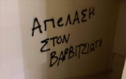 Άγνωστοι έριξαν τρικάκια και έγραψαν συνθήματα στην είσοδο της πολυκατοικίας, όπου στεγάζεται το γραφείο του αναπληρωτή υπουργού Εξωτερικών Μιλτιάδη Βαρβιτσιώτη.