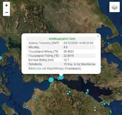 Σεισμική δόνηση μεγέθους 4,5 της κλίμακας Ρίχτερ σημειώθηκε στη Ναύπακτο το μεσημέρι της Τετάρτης, (ώρα16:58), σύμφωνα με τις μετρήσεις του Γεωδυναμικού Ινστιτούτου του Εθνικού Αστεροσκοπείου Αθηνών.
