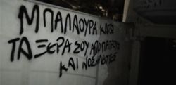 Μέλη του Ρουβίκωνα το βράδυ της Τρίτης έγραψαν συνθήματα με μαύρη μπογιά έξω από το σπίτι της διοικήτριας του νοσοκομείου "Άγιος Σάββας" στον Γέρακα.