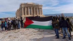 Μέλη του Ρουβίκωνα ύψωσαν το μεσημέρι της Κυριακής, 4 Φεβρουαρίου, τη σημαία της Παλαιστίνης στον Ιερό Βράχο της Ακρόπολης, αλλά και στο Μνημείο του Αγνώστου Στρατιώτη, σε ένδειξη διαμαρτυρίας για τις συνεχιζόμενες επιθέσεις των Ισραηλινών στη Λωρίδα της Γάζας, με αποτέλεσμα το θάνατο χιλιάδων Παλαιστινίων αμάχων.